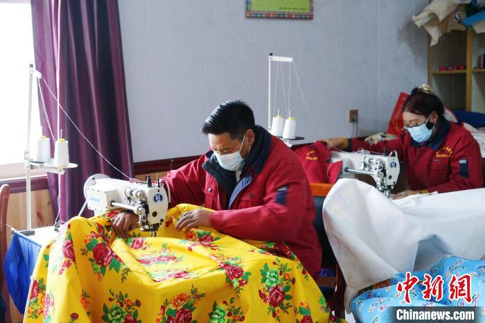 圖為工人正在制作藏服。馬銘言 攝