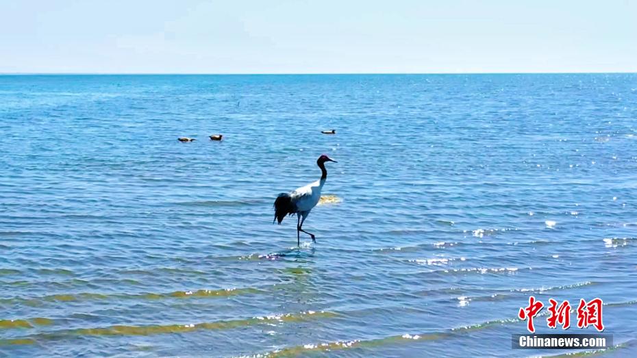 圖為青海湖邊散步的候鳥。張世偉 攝