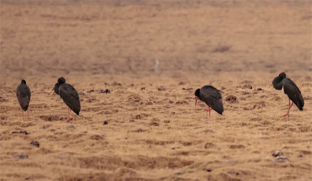 近日,有攝影師在祁連山國(guó)家公園亂海子濕地拍攝記錄到4只國(guó)家一級(jí)重點(diǎn)保護(hù)野生動(dòng)物——黑鸛,它們時(shí)而低頭覓食、時(shí)而展翅飛翔。黑鸛是一種體態(tài)優(yōu)美、體色鮮明、性情機(jī)警的大型涉禽,屬世界瀕危鳥(niǎo)類之一,在中國(guó)僅有1000多只,珍稀程度不亞于大熊貓,因此也有“鳥(niǎo)中大熊貓”之稱。