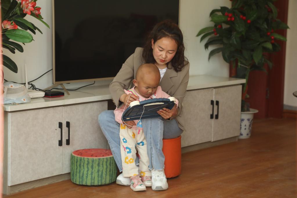 在新康村的新家,楊條女正在陪孩子畫(huà)畫(huà)。新華社記者 馬莎 攝