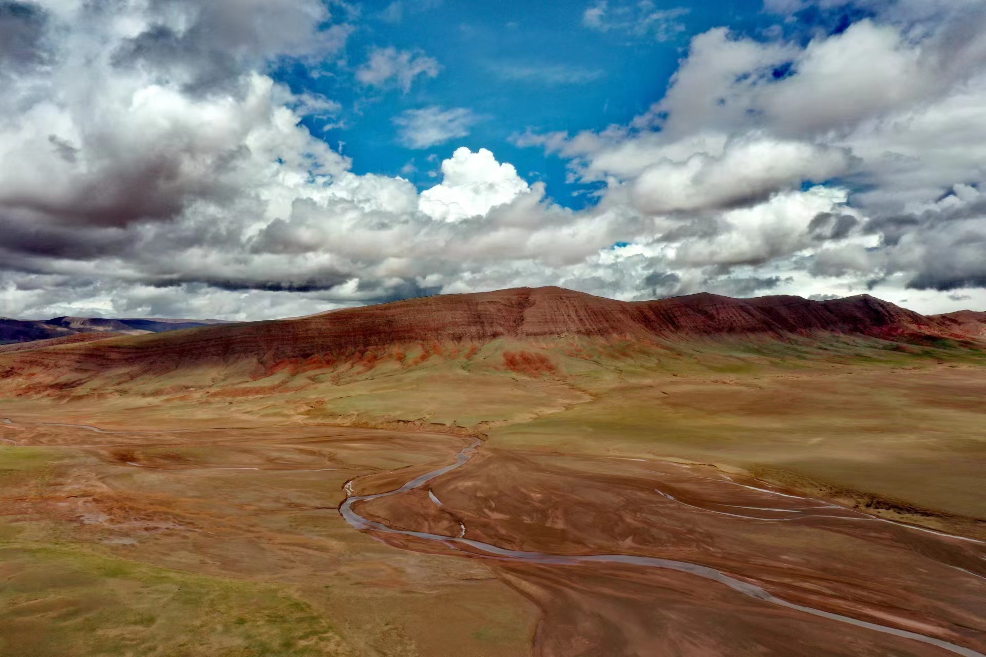 近日,中國地質(zhì)大學(xué)(武漢)長江科考先遣隊員張永一行進(jìn)行綜合科學(xué)考察時,在青藏公路日阿尺曲一帶發(fā)現(xiàn)一條紅色山脈,是青藏高原109國道沿線一處壯觀的地質(zhì)遺跡。該山脈由晚白堊紀(jì)鈣質(zhì)膠結(jié)的粉、細(xì)砂巖與古近紀(jì)紫紅色、磚紅色復(fù)成份礫巖所組成,呈近東西走向,兩坡不對稱,南陡北緩,地層剖面出露清楚。