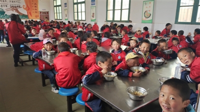6月10日中午12時,午飯鈴聲響起,理塘縣村戈鄉(xiāng)小學(xué)的428名學(xué)生在操場上排得整整齊齊,等待就餐。