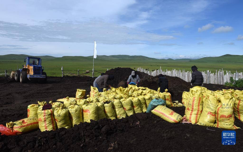 7月14日,巴周一家在出售牦牛糞。牦牛糞是可用于農(nóng)作物種植和園林綠化領(lǐng)域的優(yōu)質(zhì)肥料。新華社記者 陳燮 攝