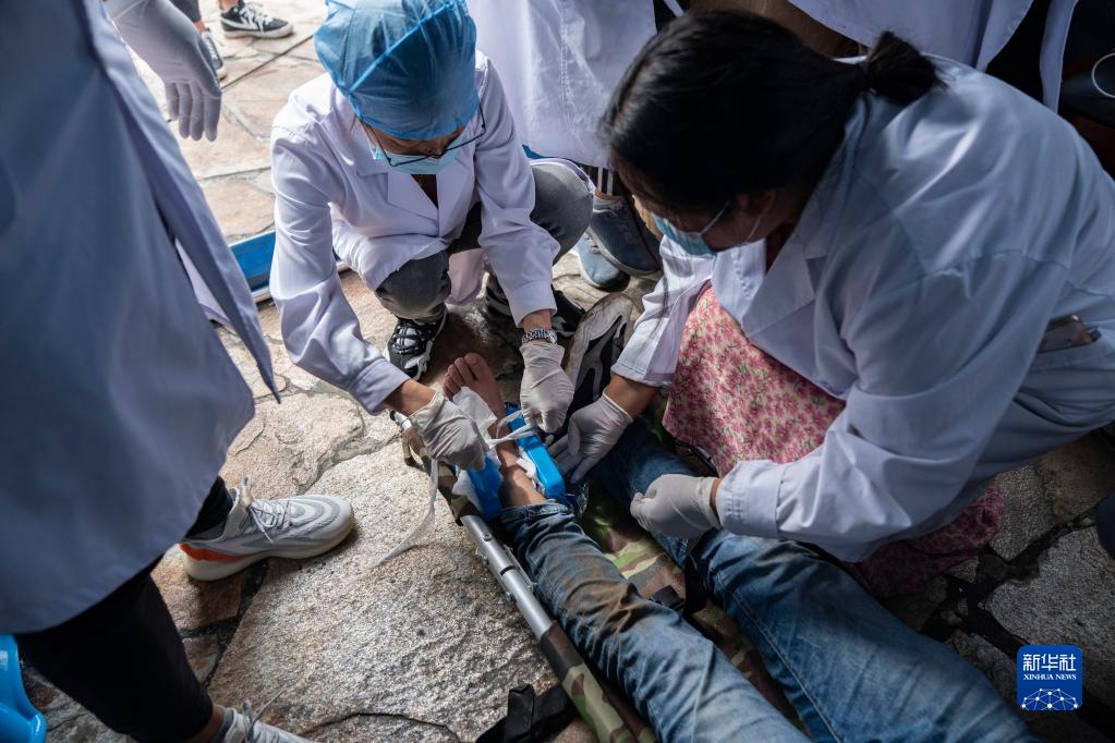 四川瀘定6.8級(jí)地震:森林消防震中營(yíng)救轉(zhuǎn)移地震傷者和被困群眾