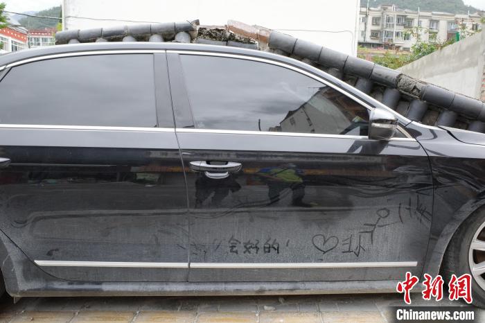 這座繁華小鎮(zhèn),往日的熱鬧與此時的寂靜對比鮮明,這是大自然的威力。不過,街頭的蛛絲馬跡顯露著當(dāng)?shù)厝说臉酚^。磨西鎮(zhèn)街邊,一輛黑色轎車被倒塌的圍墻壓癟了一半,有人在車門上寫了三個字——“會好的!”