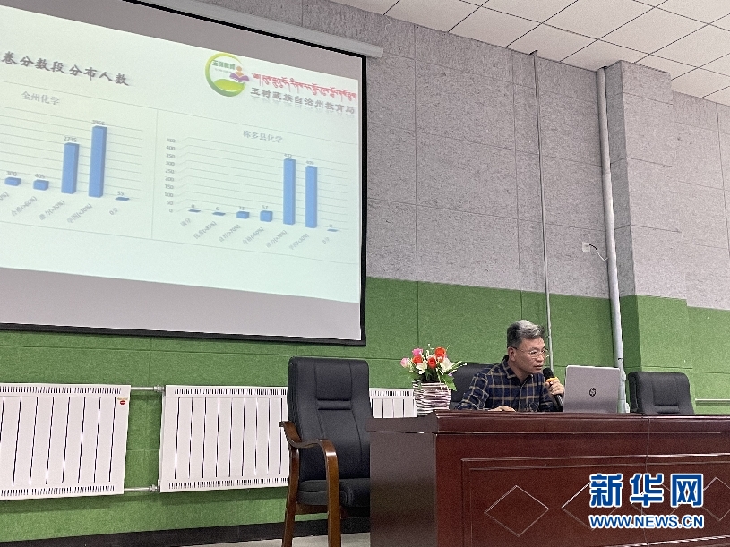 2021年10月15日,趙焱在玉樹州稱多縣教育調(diào)研途中,進(jìn)行義務(wù)教育階段考試分析。(新華網(wǎng)發(fā) 受訪者供圖)