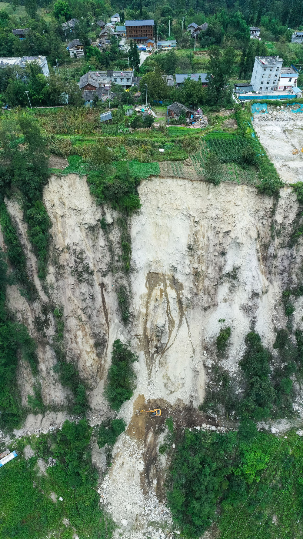 這是9月7日拍攝的幸福村二組附近的照片,可看到山體多處滑坡(無人機(jī)照片)。