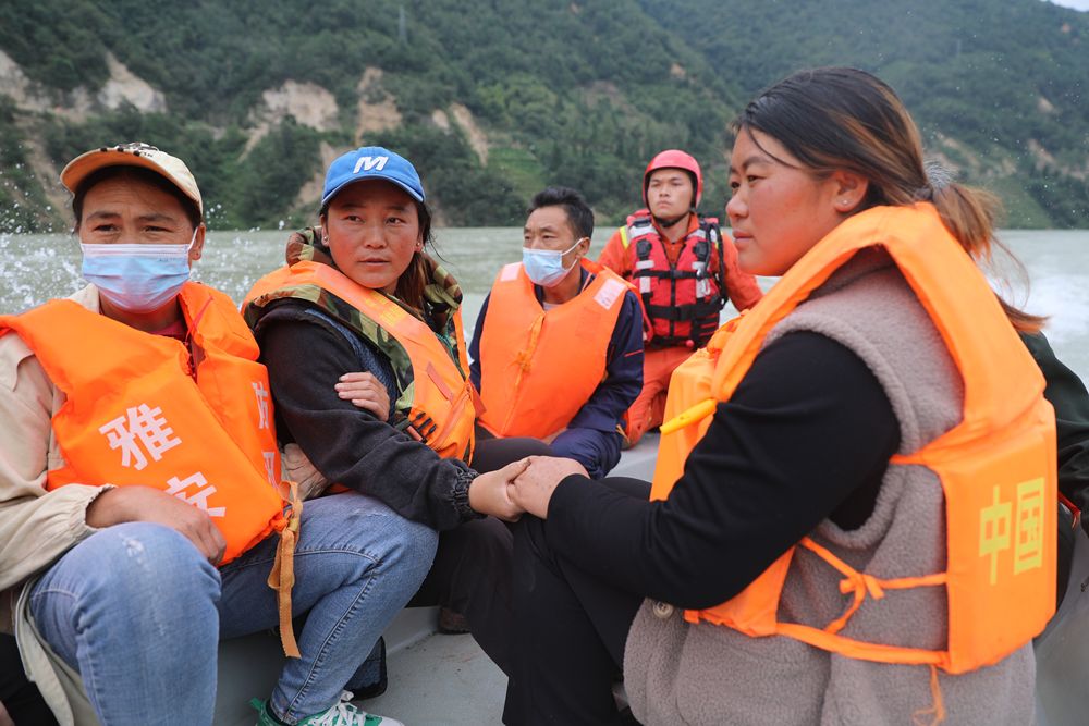 石棉縣王崗坪彝族藏族鄉(xiāng)幸福村緊鄰大崗山水庫,有數(shù)百戶居民,9月5日的地震切斷了這里的道路、電力,水力、通訊,成為名副其實(shí)的“孤島”。但是,援助不會因?yàn)槁吠酒h(yuǎn)而缺席,消防救援隊(duì)伍乘沖鋒舟再翻山越嶺終于在6號到達(dá)該處村莊,快速穩(wěn)妥轉(zhuǎn)移被困受傷群眾,幫助村民在被埋的房屋找尋貴重物品,甚至幫村民轉(zhuǎn)運(yùn)養(yǎng)殖的豬。