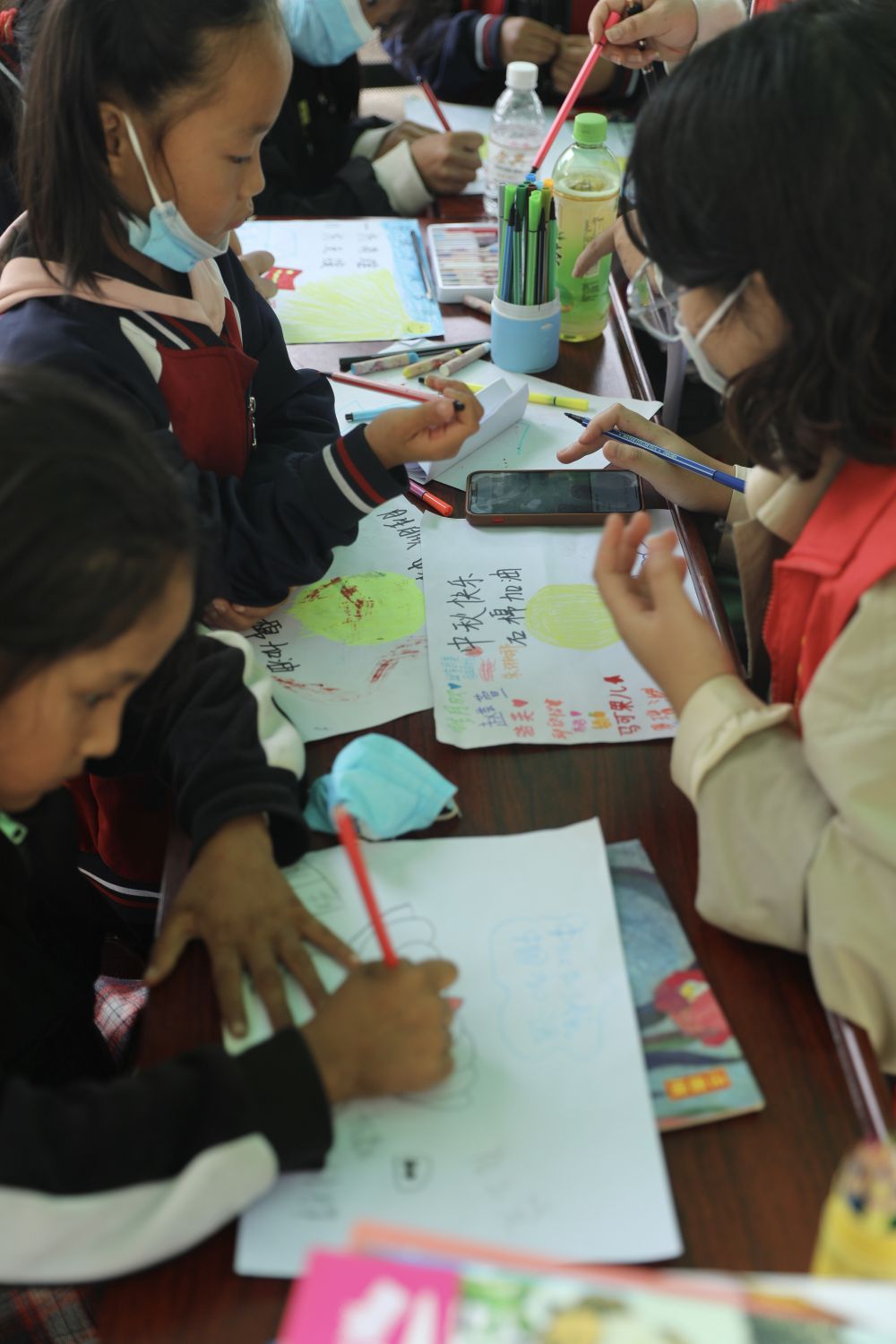 安置點(diǎn)內(nèi)的“青青兒童樂園”,在眾多的救災(zāi)帳篷中顯得格外突出。中秋節(jié)將至,在志愿者哥哥姐姐的幫助下,小朋友們開始為中秋節(jié)做準(zhǔn)備,他們用稚嫩卻真誠的筆觸寫著祝福語,折著千紙鶴,為家鄉(xiāng)加油打氣。
