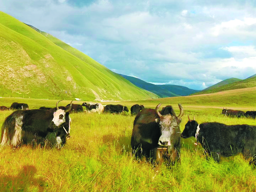 散落在草原山谷間的牦牛。本報記者 程宦寧 張子涵 攝