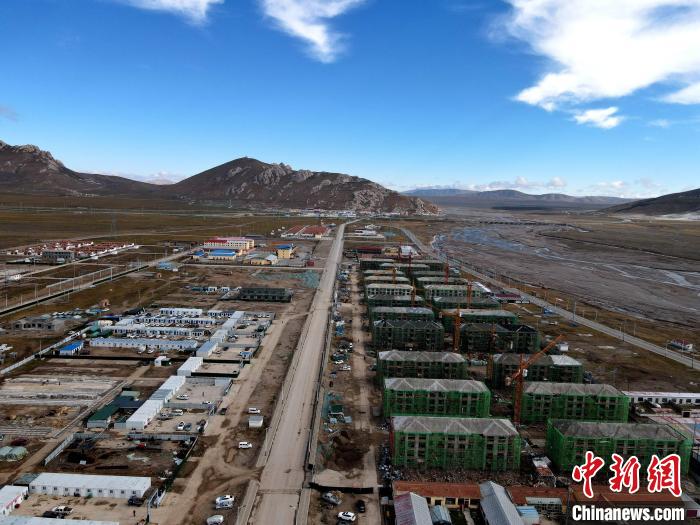 圖為無人機航拍瑪多地震災后重建農(nóng)牧民D級住房重建項目?,敹嗫h委宣傳部 供圖