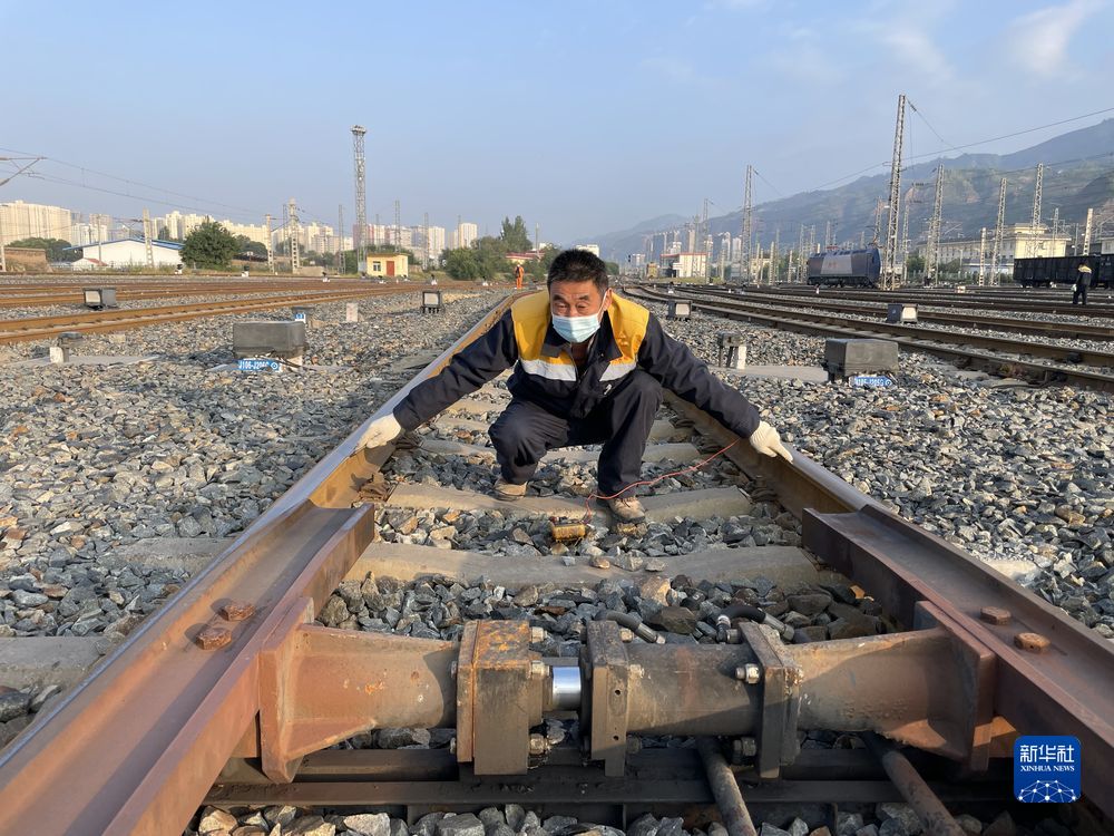 圖為西寧電務(wù)段駝峰信號(hào)工區(qū)工長張金玉測試信號(hào)設(shè)備。新華社發(fā) 李紅蘭 攝
