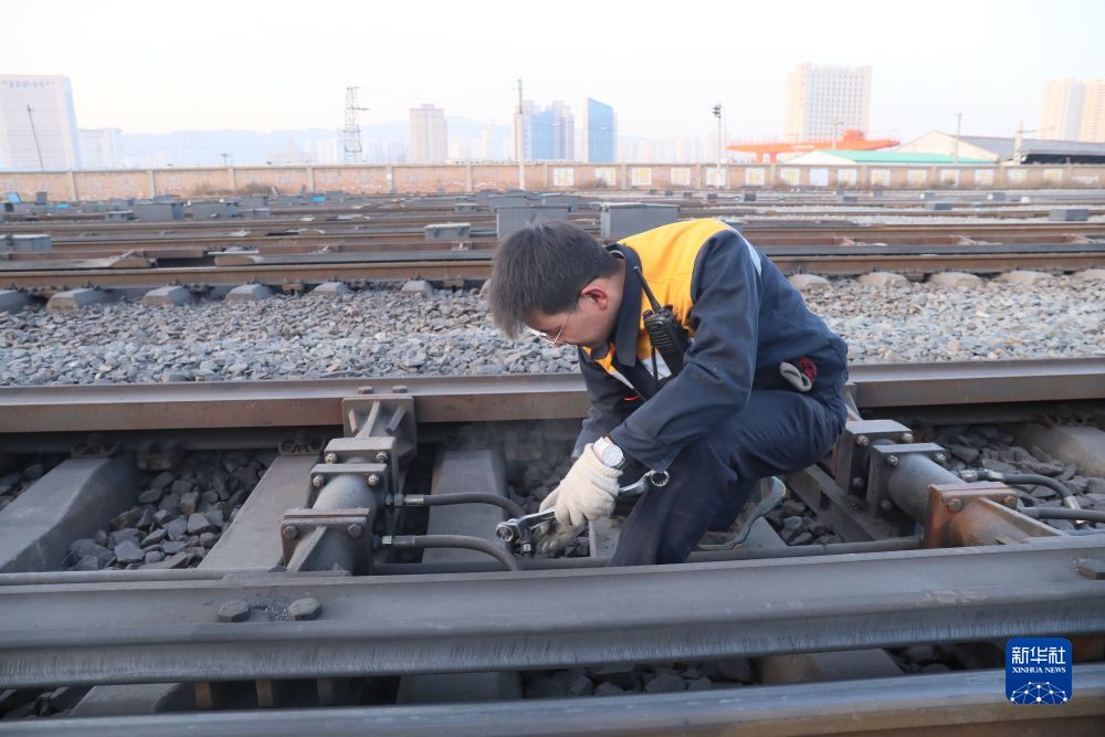 圖為西寧電務(wù)段職工維修減速器。新華社發(fā) 許娜 攝