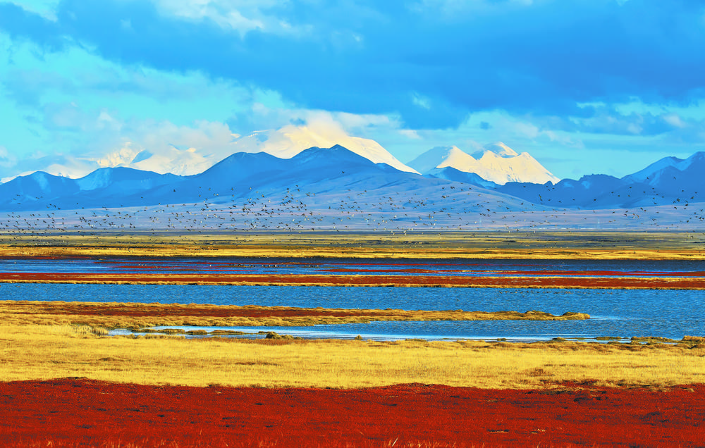 行進(jìn)在三江源國(guó)家公園,波光瀲滟的湖面成為鳥類和魚類的生存樂(lè)園,廣袤的大草原上藏野驢成群奔跑,大大小小的湖泊隨處可見,三江源頭碧波蕩漾重現(xiàn)千湖美景已成為人們對(duì)這方厚土的最直觀的感受。