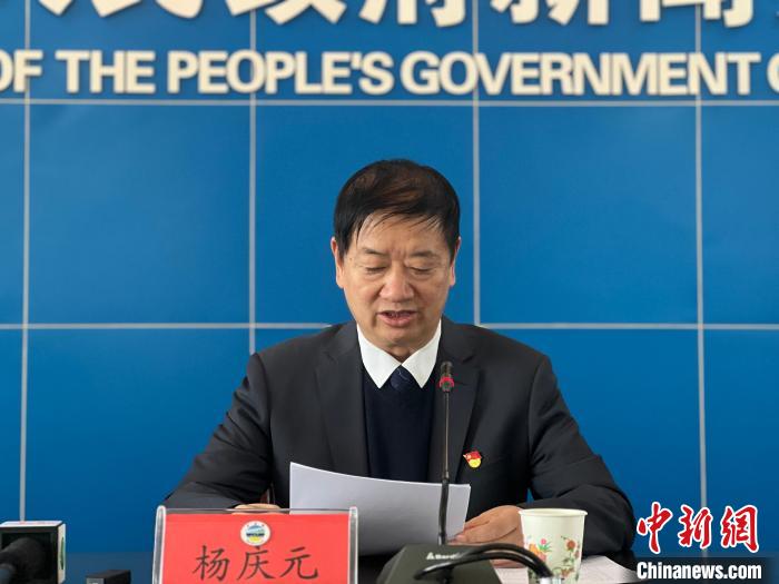 圖為青海湖景區(qū)保護(hù)利用管理局副局長楊慶元在新聞發(fā)布會上作發(fā)布。李江寧 攝