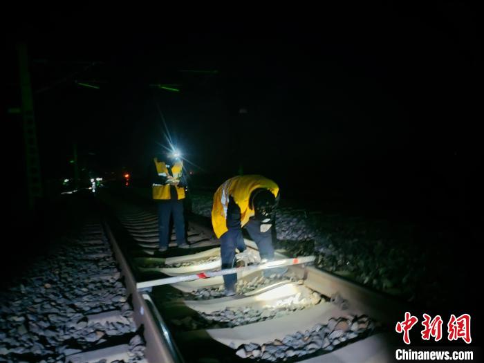 在現(xiàn)場,“精調(diào)師”們戴著頭燈、手握道尺,十步一跪趴查看著高低方向、三步一彎腰量取著軌距水平、一步一低頭配發(fā)著軌底墊板,并不時在鋼軌上標記緊固螺栓的先后次序,井然有序?!岸嗄昃S修和養(yǎng)護積累了不少的經(jīng)驗,加之近幾年有了大數(shù)據(jù)和技防設(shè)備的加持,讓我們處理各項隱患更加得心應手?!泵啾蠼榻B。