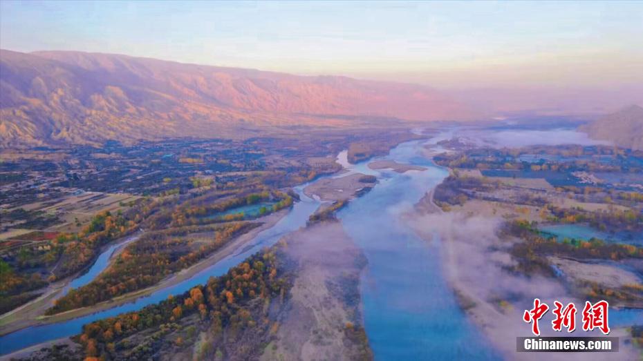 深秋時(shí)節(jié),享有“天下黃河貴德清”美譽(yù)的青海省貴德縣秋意正濃。黃河岸畔,一層層薄霧如飄紗籠罩河面,碧波蕩漾的黃河水與兩岸樹(shù)林、農(nóng)田、丹霞地貌交相輝映,美景如畫(huà)。青海省是中華民族母親河黃河的發(fā)源省,黃河流經(jīng)貴德76.8公里。貴德縣融媒體中心 供圖