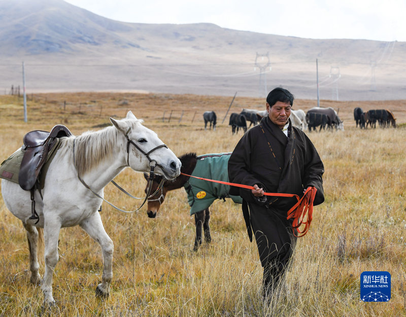談話間,一人一騎疾馳如風(fēng),轉(zhuǎn)眼來到記者眼前。這個(gè)名叫萬瑪王青的藏族小伙子瘦而結(jié)實(shí),由于長(zhǎng)時(shí)間的高原放牧生活而皮膚黝黑、性格靦腆,但馬背上的他卻神采奕奕。