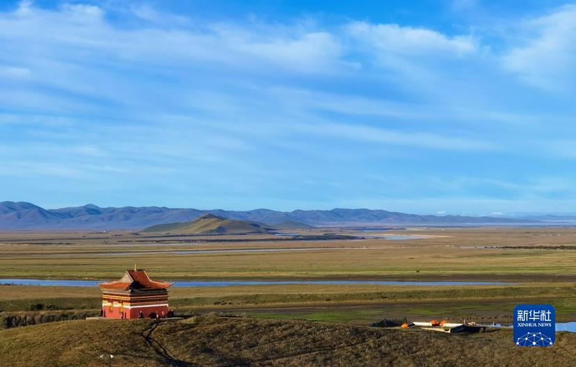 這是2022年10月18日在四川省阿壩藏族羌族自治州若爾蓋縣拍攝的花湖濕地(無(wú)人機(jī)照片)。新華社記者 王曦 攝