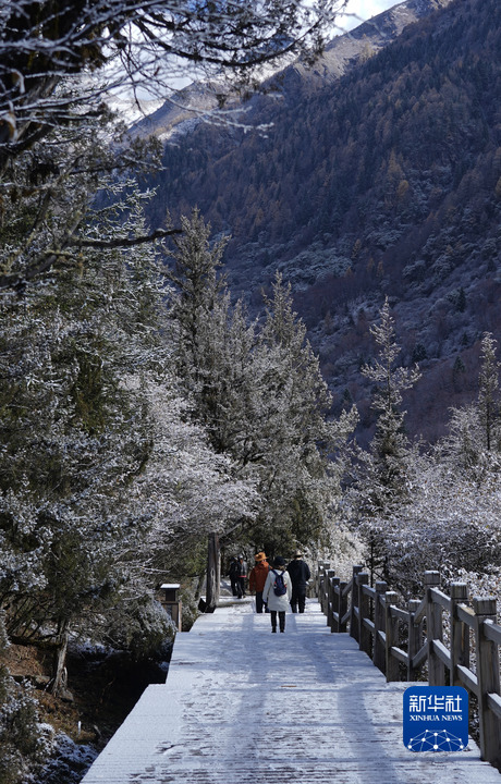11月8日,游客在四姑娘山長(zhǎng)坪溝景區(qū)內(nèi)游覽。新華社記者 馮家順 攝