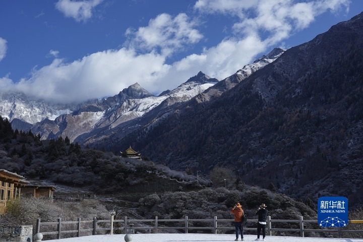 11月8日,游客在四姑娘山長(zhǎng)坪溝景區(qū)內(nèi)游覽。新華社記者 劉瓊 攝