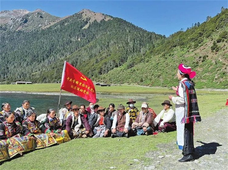 圖為香格里拉市委黨校牧區(qū)流動(dòng)黨校為群眾宣講黨的二十大精神