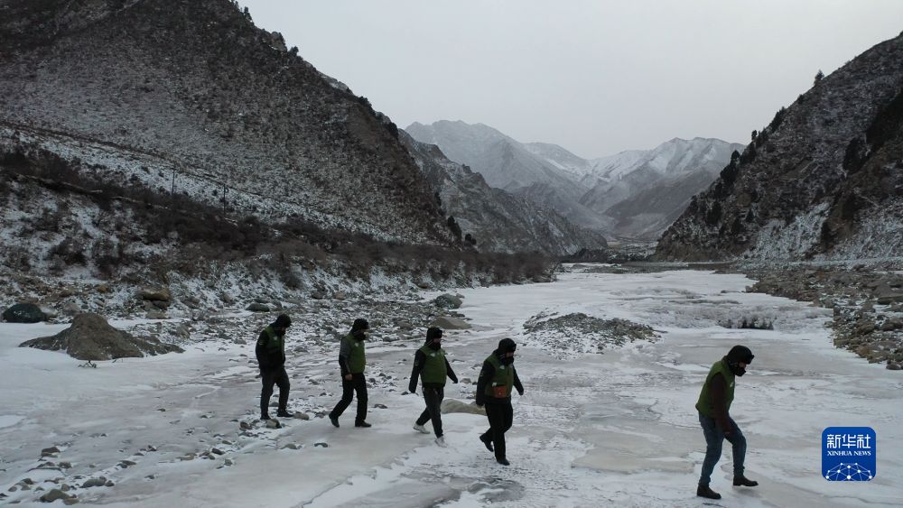 1月14日下午,管護(hù)員在野外巡山(無人機(jī)照片)。新華社記者 李占軼 攝