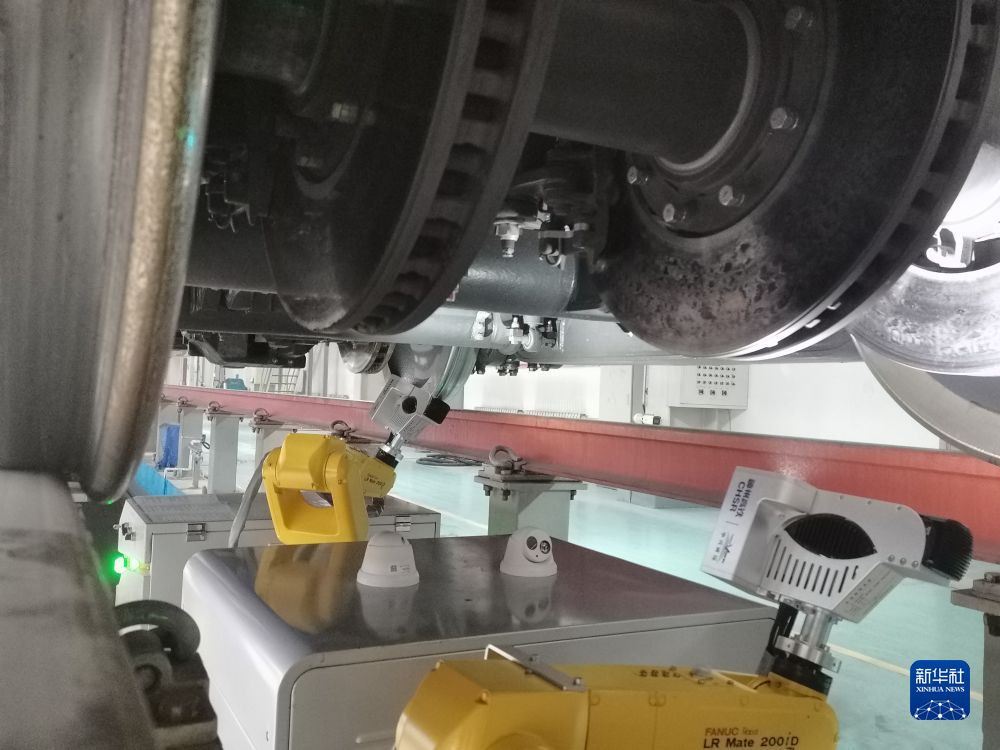 動(dòng)車組智能檢修機(jī)器人在車底工作。新華社記者 解統(tǒng)強(qiáng) 攝