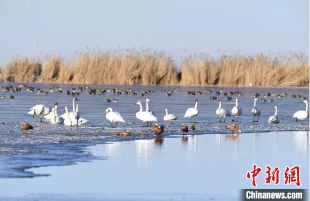 青海越冬大天鵝樂(lè)享“天下黃河貴德清”