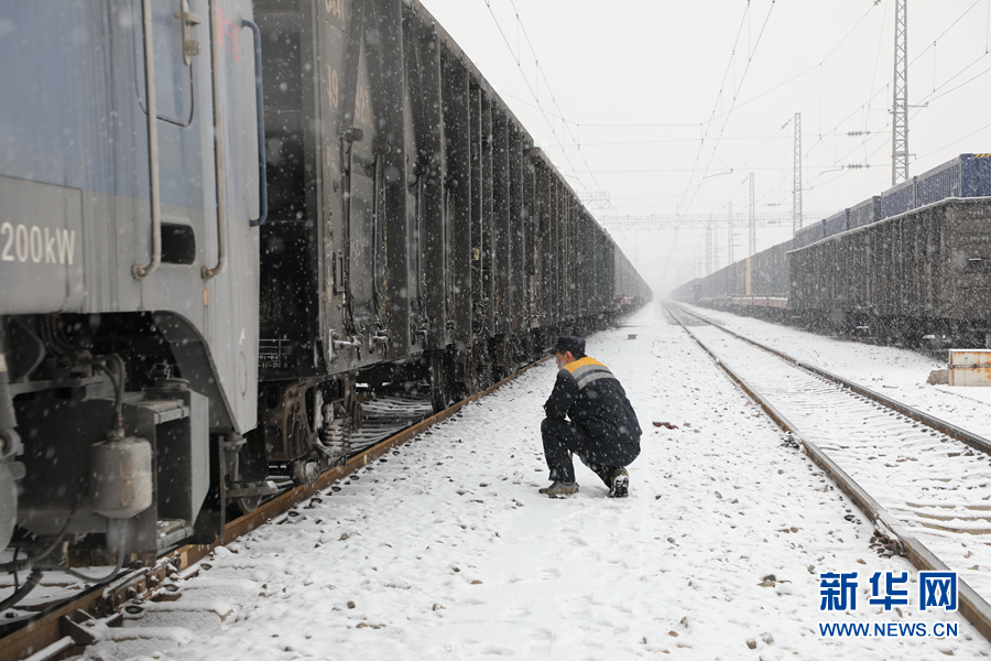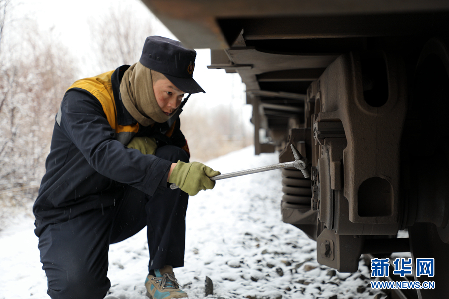 列檢人員對貨運列車進(jìn)行檢查。新華網(wǎng) 馬建林 攝