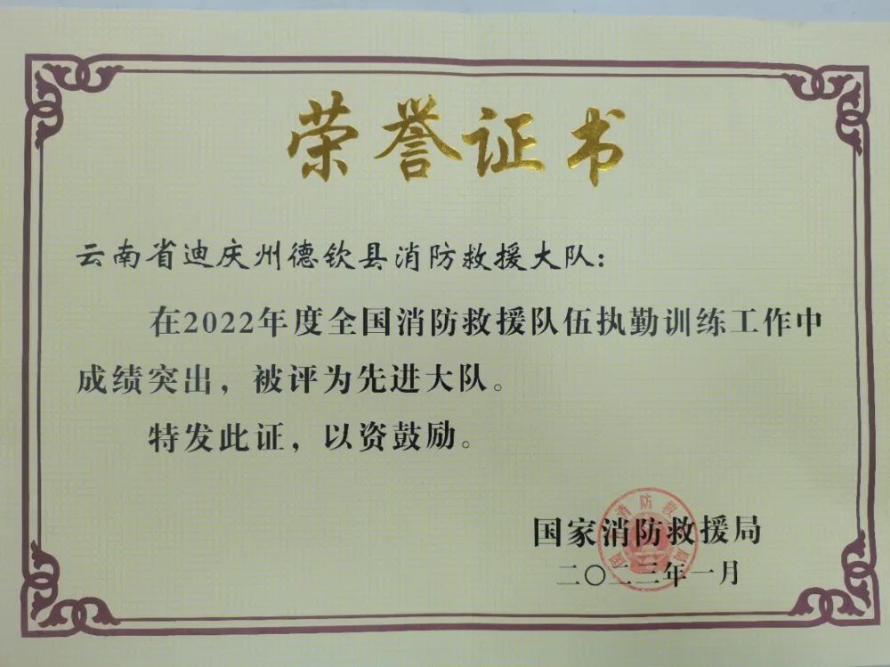 喜報(bào):德欽縣消防救援大隊(duì)獲國(guó)家消防救援局表彰