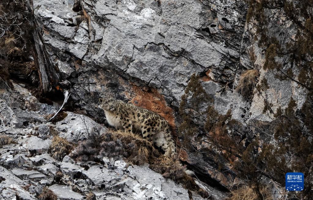 2月21日,在青海省玉樹藏族自治州雜多縣昂賽鄉(xiāng)境內(nèi)的昂賽大峽谷內(nèi),一只雪豹正在活動(dòng)。新華社記者 張宏祥 攝