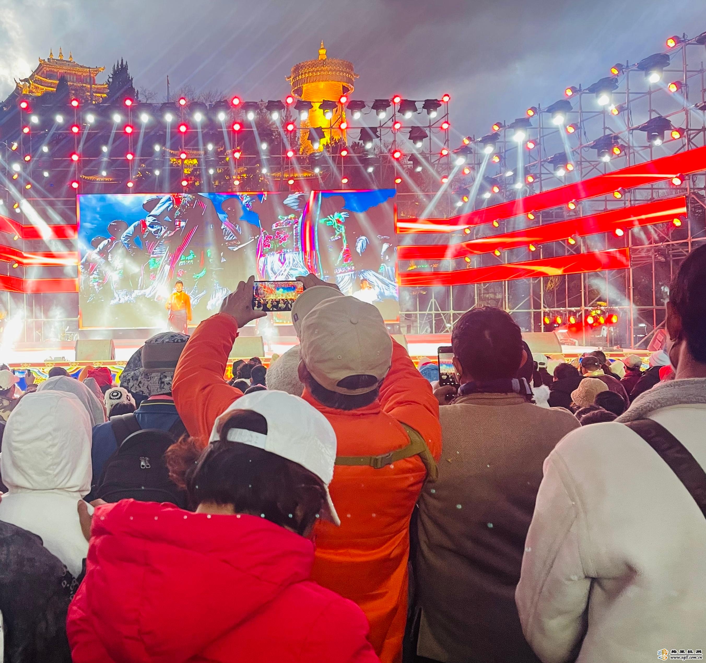 “我在古城月光廣場,今晚這里有演唱會”“你快來啊,我在舞臺旁邊坐著等你”……2月21日19時,距離“相約世界的香格里拉·本土歌手唱家鄉(xiāng)”演唱會開始還有20分鐘,本地居民、游客紛紛呼朋喚友聚集到香格里拉市獨克宗古城月光廣場。