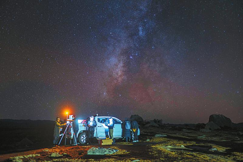 劉煜尤其中意稻城的夜晚。不同于城市夜空總籠罩著一層人工光造成的微紅光輝,這里的黑夜很純粹,“月亮是唯一的光源,穩(wěn)定的大氣層,使得這里數以萬計的星星甚至不會忽明忽暗地‘眨眼睛’?!敝苓厴O低的人口密度,使得燈光污染幾乎不會影響夜天文觀測工作。