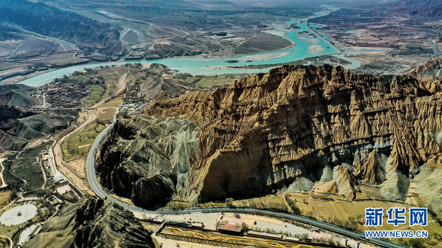 隨著氣溫回暖,位于黃河岸畔的青海省海南藏族自治州貴德縣春意漸濃。從高空俯瞰,貴德國(guó)家地質(zhì)公園內(nèi),碧水東流、丹霞相映,勝似一幅奇特瑰麗的高原畫(huà)卷。
