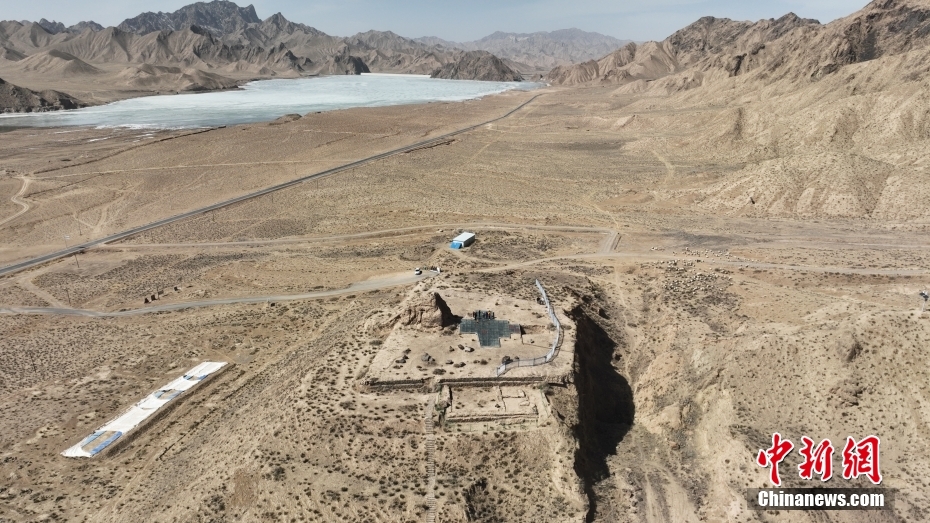圖為3月18日,航拍青海省海西州都蘭縣熱水墓群一號(hào)大墓。(無人機(jī)照片)中新社記者 馬銘言 攝