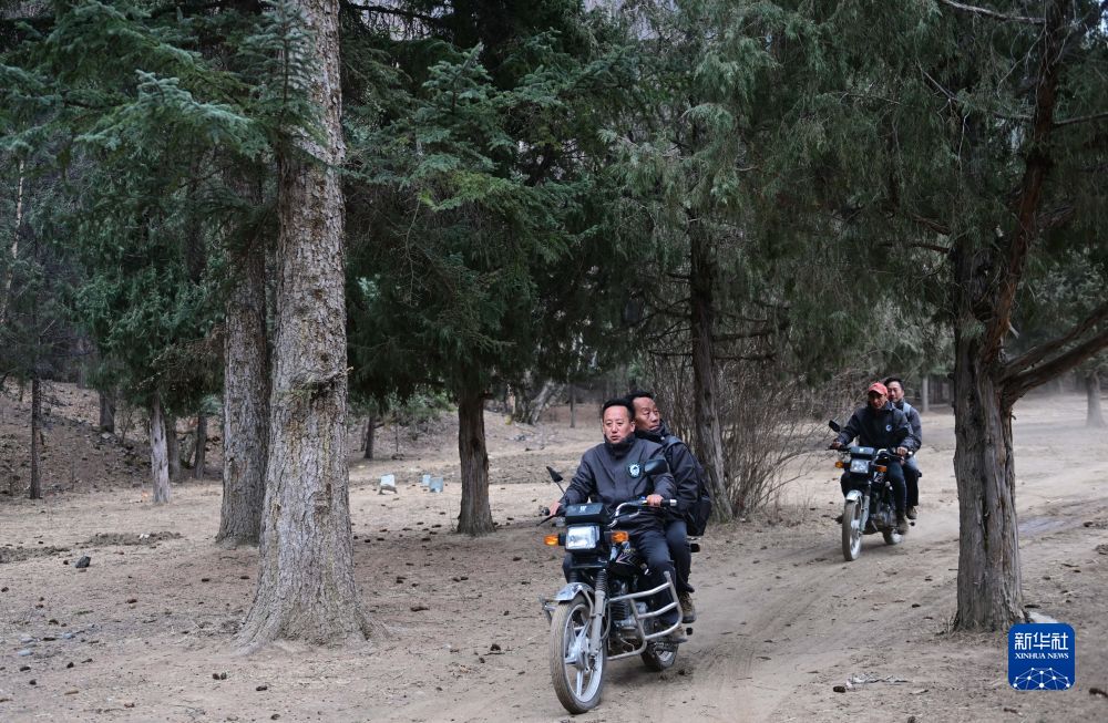3月24日,在青海省黃南藏族自治州麥秀林場(chǎng),護(hù)林員在巡護(hù)林區(qū)。新華社記者 張龍 攝