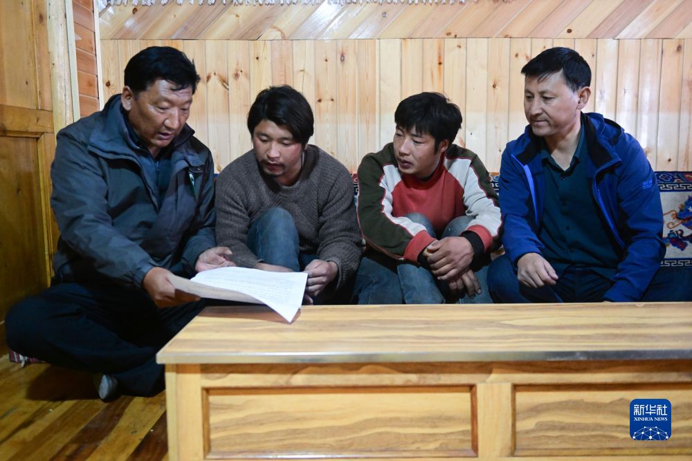 3月24日,在青海省黃南藏族自治州澤庫(kù)縣麥秀鎮(zhèn)龍藏村,麥秀林場(chǎng)護(hù)林員(左一)在牧民家中宣傳防火知識(shí)。新華社記者 張龍 攝
