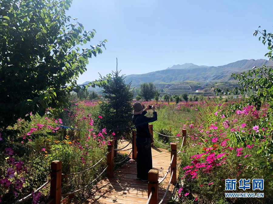 (資料圖)游客在海東市化隆回族自治縣安達(dá)其哈花海拍照。新華網(wǎng) 魚(yú)昊 攝