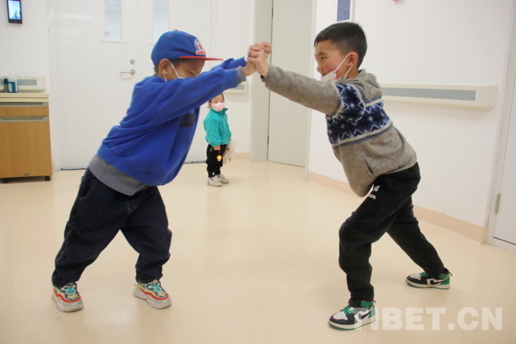 圖為3月30日,即將從中國醫(yī)學(xué)科學(xué)院整形外科醫(yī)院出院的青海果洛患兒們正在一起玩耍,多日相處,彼此間已成為好朋友攝影:劉莉