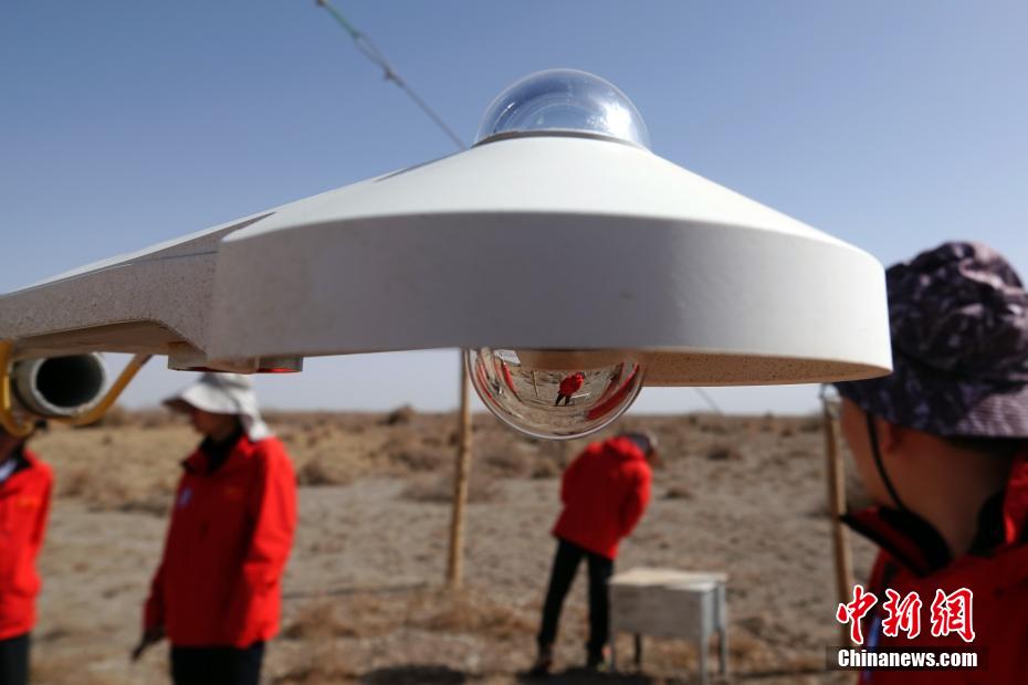 圖為看上去貌似燈泡的科研設備,其實是觀測站用于研究地氣相互作用的短波輻射通量的觀測探頭。中新社記者 孫自法 攝