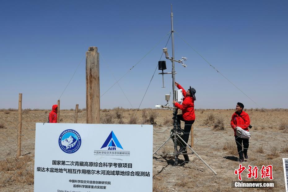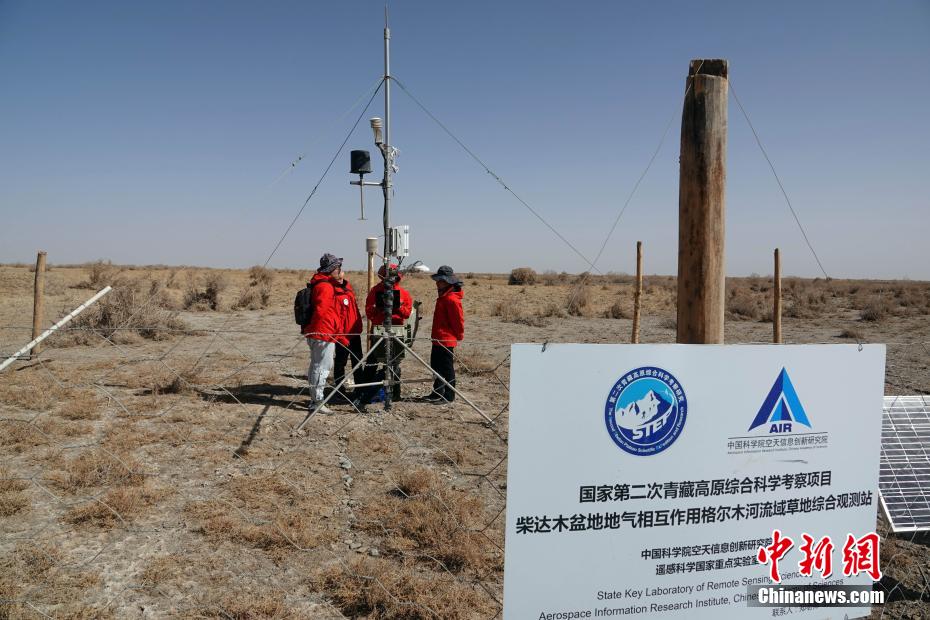 4月9日,中國第二次青藏高原綜合科學考察(第二次青藏科考)“西風-季風作用區(qū)非均勻下墊面地氣相互作用機載通量觀測”科考分隊、中國科學院空天信息創(chuàng)新研究院(中科院空天院)科研團隊組成的先遣隊員一行,來到位于青海格爾木的第二次青藏科考項目“西風-季風協(xié)同作用及其影響”的柴達木盆地地氣相互作用格爾木河流域草地綜合觀測站,進行數據讀取、設備維護等工作。