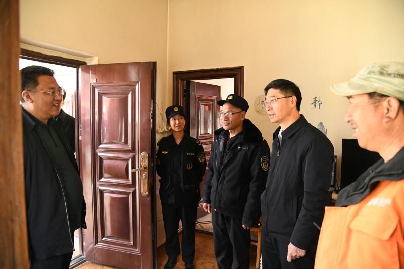 在德吉林寺檢查站,羅朝峰與執(zhí)勤人員親切交談,詳細(xì)了解每天進(jìn)山人數(shù)、造冊(cè)登記、流動(dòng)人員管理等情況。