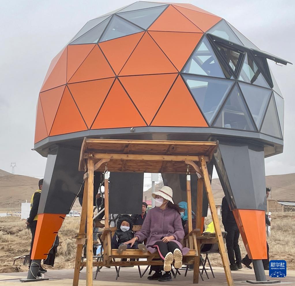27日,游客在活動(dòng)現(xiàn)場體驗(yàn)星空房和戶外秋千。 新華社記者 周盛盛 攝