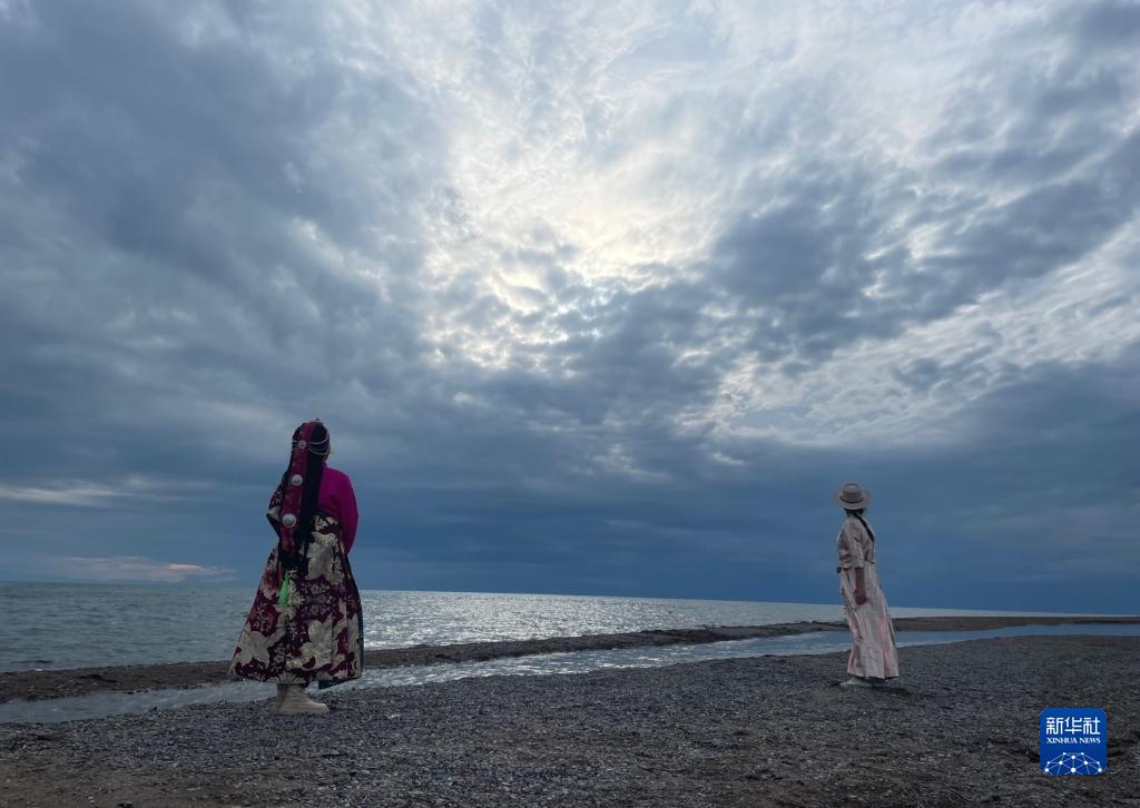 兩位藏族姑娘在海北州海晏縣的青海湖畔。新華社記者 李琳海 攝