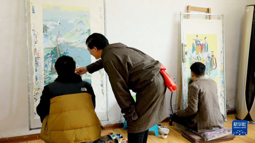 青海省黃南藏族自治州同仁市龍樹畫苑于2013年建成運行,是當?shù)赜忻姆俏镔|(zhì)文化遺產(chǎn)綜合傳習中心。隨著熱貢唐卡知名度的不斷提高,全國各地慕名而來的學員也越來越多。十年來,龍樹畫苑累計培養(yǎng)760名熱貢唐卡藝人。其中,年收入達到10萬元以上的有百余人,普通學員的年收入在四到五萬元。