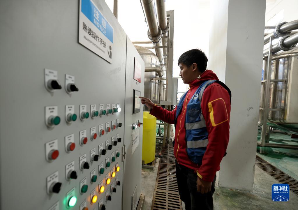4月22日,在高海拔宇宙線觀測站觀測基地水處理機房,工作人員在操作水處理相關(guān)程序。新華社記者 金立旺 攝