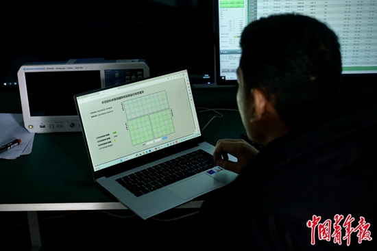 4月22日,四川稻城,一位年輕的科研人員正在查看水切倫科夫探測器陣列的實(shí)時運(yùn)行狀態(tài)。中青報·中青網(wǎng)記者 李強(qiáng) 攝