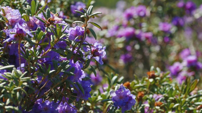 夏天,位于香格里拉市小中甸鎮(zhèn)的杜鵑花海競相綻放,紫色、粉色的花朵開成了海,與藍天白云遙相呼應(yīng),藏房點綴其間,美不勝收。每當花季,當?shù)氐睦习傩赵诨ê_厰[起特色美食,牦牛酸奶、苦蕎粑粑、酥油茶等美食供游客享用,坐在花海邊,品嘗當?shù)靥厣朗?,是這個夏天小中甸花海獨有的浪漫。
