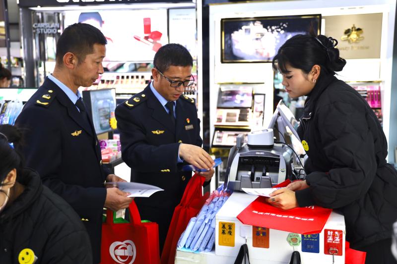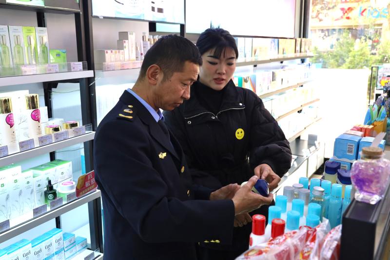 啟動(dòng)儀式結(jié)束后,市場(chǎng)監(jiān)督管理部門(mén)的工作人員為現(xiàn)場(chǎng)群眾發(fā)放并講解宣傳冊(cè),同時(shí)為化妝品經(jīng)營(yíng)商進(jìn)行上門(mén)普法,規(guī)范企業(yè)經(jīng)營(yíng)行為。